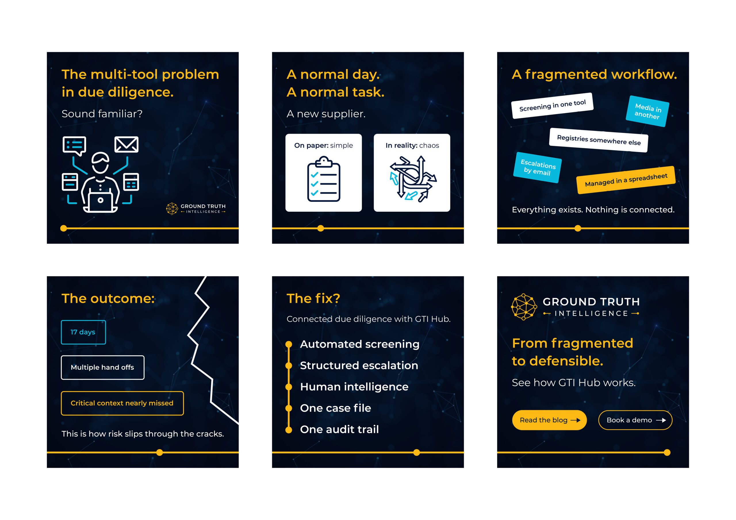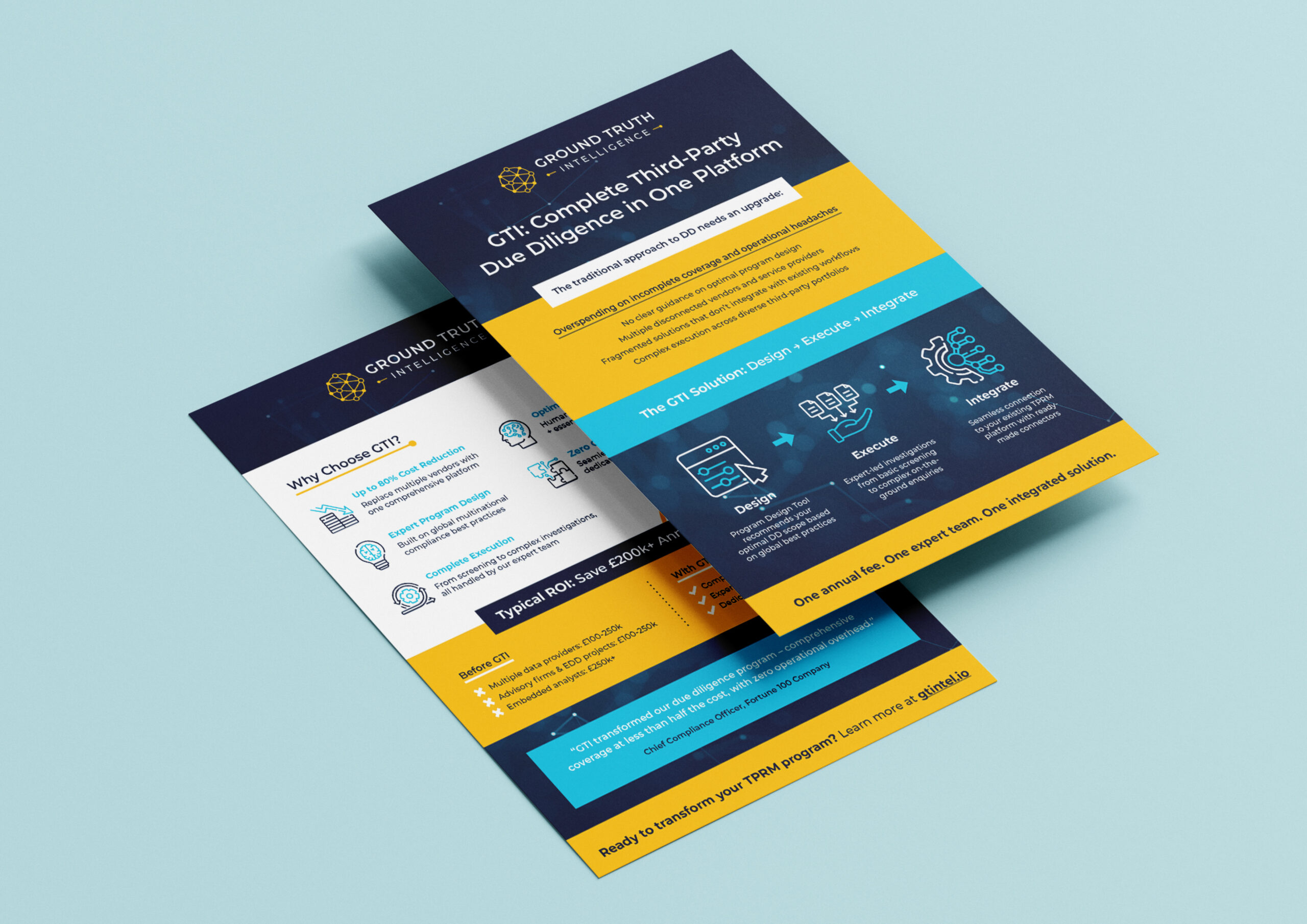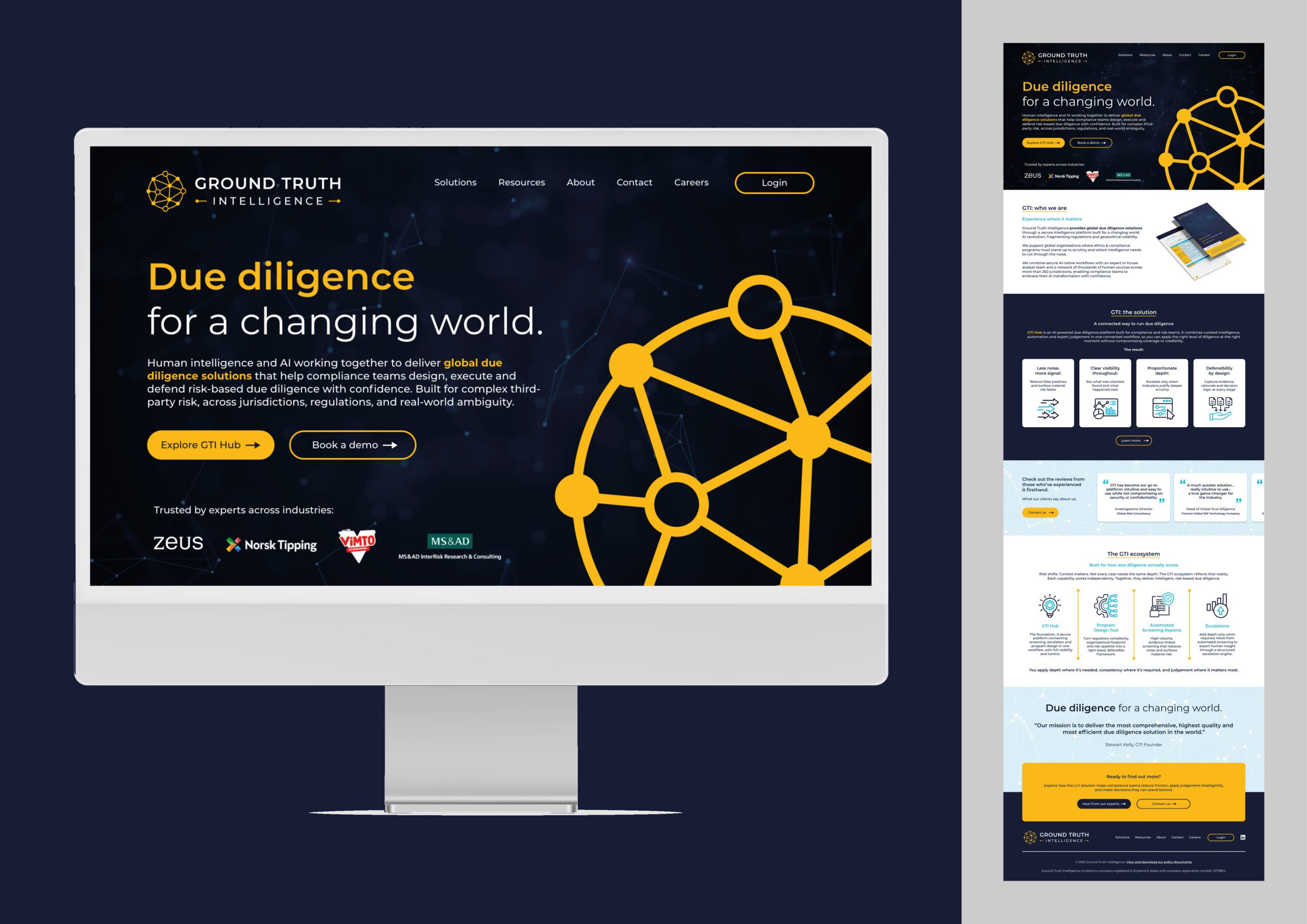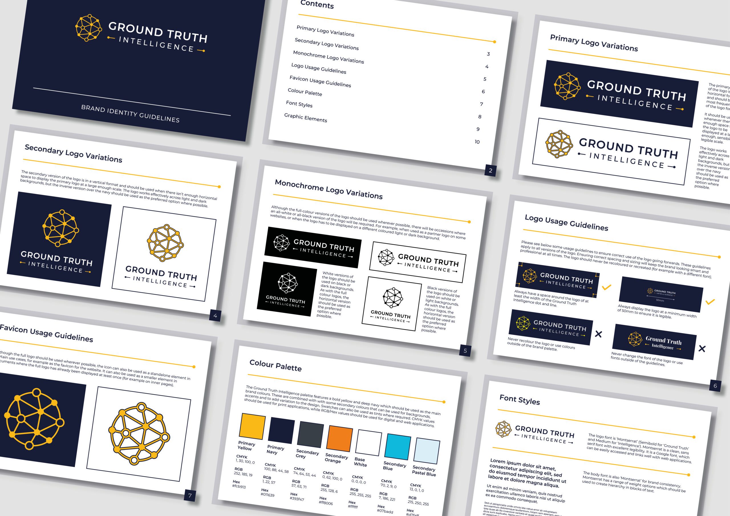 Ground Truth Intelligence came to us for a brand refresh to refine their existing logo and elevate the brand’s strengths. The old logo had some strengths in the symbol, but the yellow text wasn’t very legible on a white background, the font size was too small and spaced out, and details in the symbol were lost at a smaller scale.